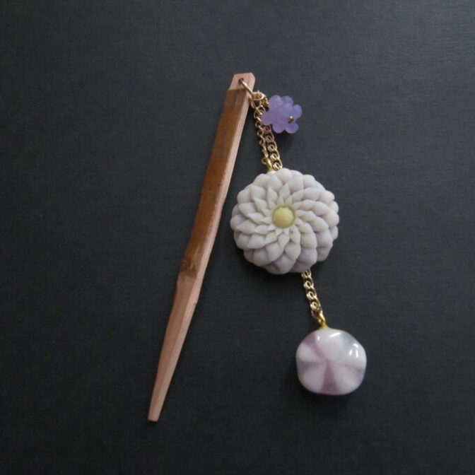 元和菓子職人が樹脂粘土やレジンで本物とほぼ同じ工程で製作した和菓子風の帯飾りです。