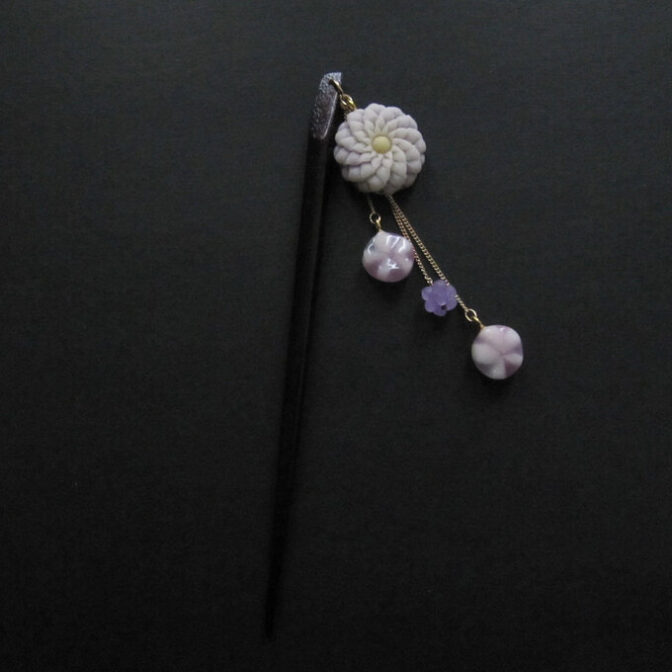 元和菓子職人が樹脂粘土やレジンで本物とほぼ同じ工程で製作した和菓子風の簪です。