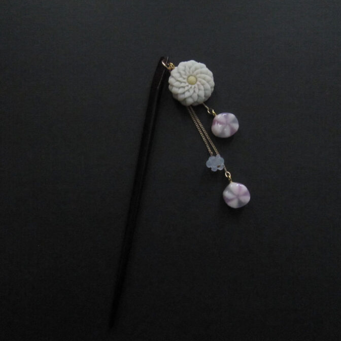 元和菓子職人が樹脂粘土やレジンで本物とほぼ同じ工程で製作した和菓子風の簪です。