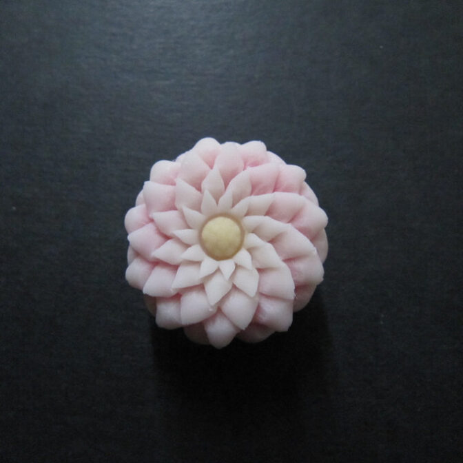 元和菓子職人が樹脂粘土やレジンで本物とほぼ同じ工程で製作した和菓子風の帯留めです。