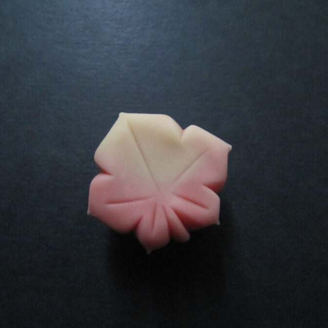 練り切りの大きさは長辺2,8㎝短辺2,5㎝厚さ0,8㎝。