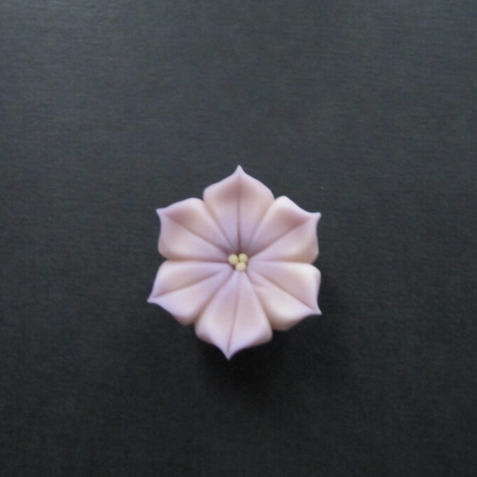 元和菓子職人が樹脂粘土やレジンで本物とほぼ同じ工程で製作した和菓子風の帯留めです。