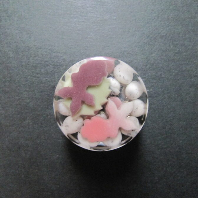 帯留め和装花和菓子 錦玉羹金魚帯留め 通常価格 2200 円 (税込) minneで購入 ※商品価格以外に別途送料がかかります。 説明 元和菓子職人が樹脂粘土やレジンで本物とほぼ同じ工程で製作した和菓子風の帯留めです。 錦玉羹風の金魚モチーフの帯留めです。 錦玉羹の大きさは直径2,8㎝厚さ1㎝。 帯留め金具は三分紐用で厚さ5mmまでの帯締めや飾り紐で使用できます 素材は樹脂粘土とレジンです。 ※色合いがお使いの機器によって画像と実物とで違く見える場合がございます。 ご了承ください。 コメントは受け付けていません。