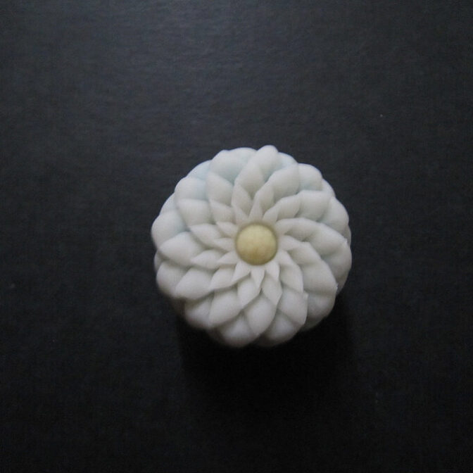 元和菓子職人が樹脂粘土やレジンで本物とほぼ同じ工程で製作した和菓子風の帯留めです。