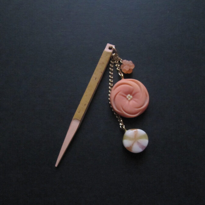 元和菓子職人が樹脂粘土やレジンで本物とほぼ同じ工程で製作した和菓子風の帯飾りです。
